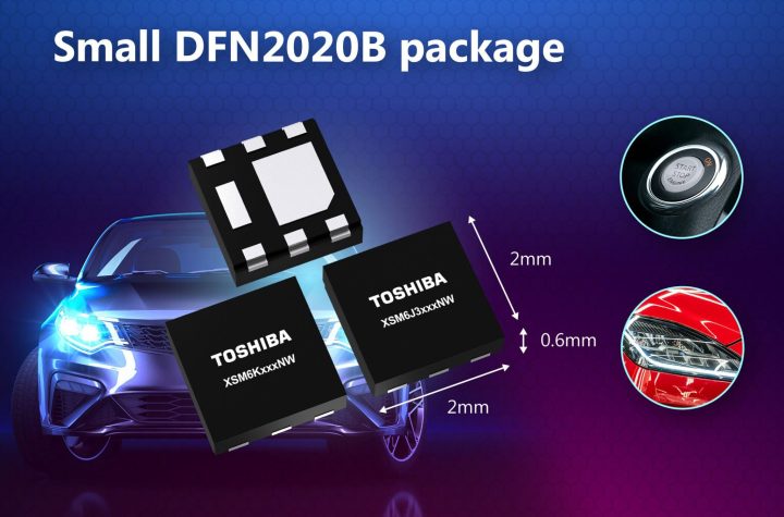 Toshiba has launched five automotive MOSFETs in a compact DFN2020B(WF) package, reducing mounting area by 43% while improving AOI inspection...