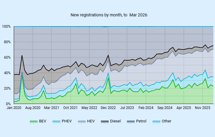 BEV registrations hit a UK monthly record of 83,662 units in March, with overall market growth driven entirely by electrified...